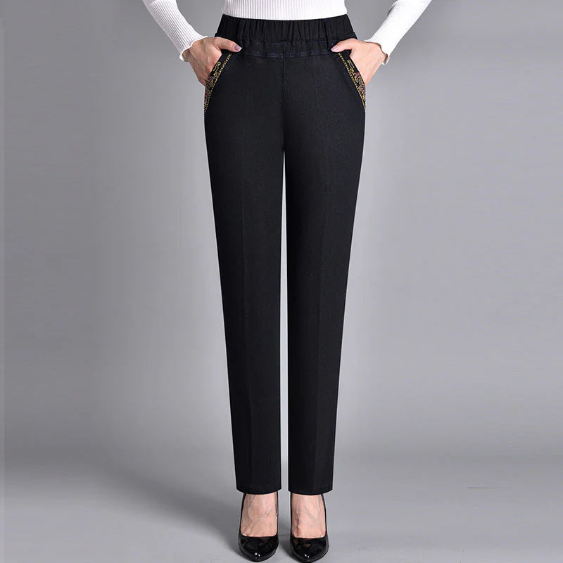 Looking for jeans that prioritize comfort without compromising style? These Veve jeans are your perfect match. With an elasticated waist, practical side pockets, and a flattering straight leg, they're the ultimate combination of ease and elegance. Whether you're on the go, relaxing at home, or hitting the town—these jeans do it all.