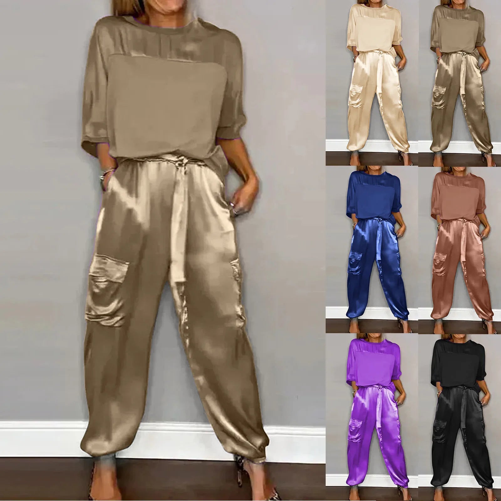 Experience the perfect combination of style and comfort with the Satin Set - Zaza. This two-piece set is designed for women who want to look effortlessly chic, whether you're attending a business meeting or planning a relaxing day out.